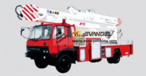 JP25 Water Tower Fire Truck is a vehicle of hydraulic drive, 360º full swing with a 3-section folding boom. The superstructure is mounted on a “Dongfeng” EQ1141G7DJ2 Ⅱchassis. H-shaped outriggers and large box-typed sub-frame are available. The fire fighting water pump is installed on the front of the sub-frame. The turntable locates at the rear of the sub-frame. Stainless steel water pipeline is fixed along the right side of the folding boom. The hydraulic-driven double-purpose foam-water monitor is fixed at the tip of the 3rd boom section. The electro-hydraulic proportional control and cable remote control are applied in the vehicle. Safety devices are well equipped. Advanced performance, smooth movements, fine inching control, safe operations are available.