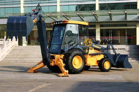 Backhoe loader, also known as a loader backhoe, is an engineering vehicle belong to construction machinery/construction equipment. The backhoe loader commonly composes a tractor, fitted with a shovel/bucket on the front and a small backhoe on the back.