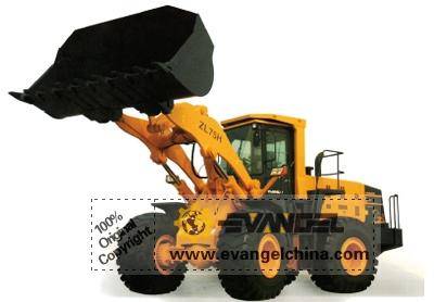 Wheel loader ZL75H is a type of construction equipment (engineering vehicle, construction machinery) that is primarily used to scoop up material such as asphalt, demolition debris, dirt, gravel, logs, raw minerals, rock, sand, wood chips, etc. to another place.